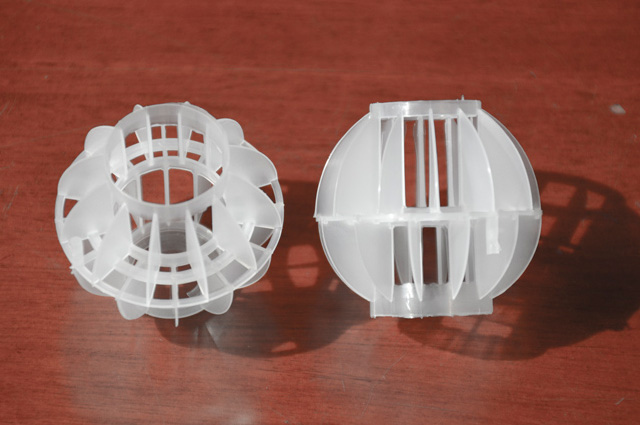 多面空心球中間鏤空結(jié)構(gòu)形成空隙大,不易被阻塞的特性。這種結(jié)構(gòu)在空氣洗滌、廢氣吸收、灰塵過濾等廢氣處理工程方面應(yīng)用,具有處理風(fēng)量大、阻力小的特點。由于多面空心球的空隙中有較高的滯液量,可使塔內(nèi)液體停留時間長,從而增加了氣體與液體的接觸面積和接觸時間。
